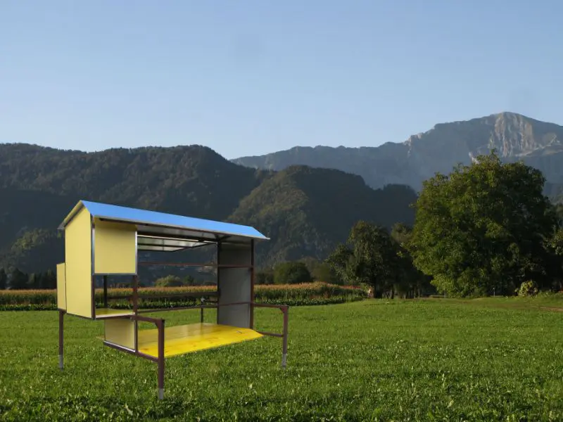 Dvig posamezne noge je 38 cm. Prednje noge so vezane na blokado, zadnje pa so narejene na »pajka«. S tem zagotovimo stabilnost čebelnjaka.