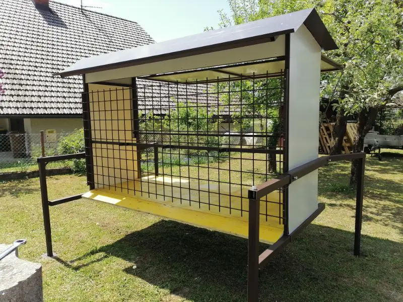 Streha je izdelana iz kvalitetne pocinkane in barvane pločevine. Je odporna na različne vremenske vplive, kot je toča, plast cinka pa zlahka opravi tudi z rjo. Ogrodje je izdelano iz konstrukcijskih jeklenih cevi.