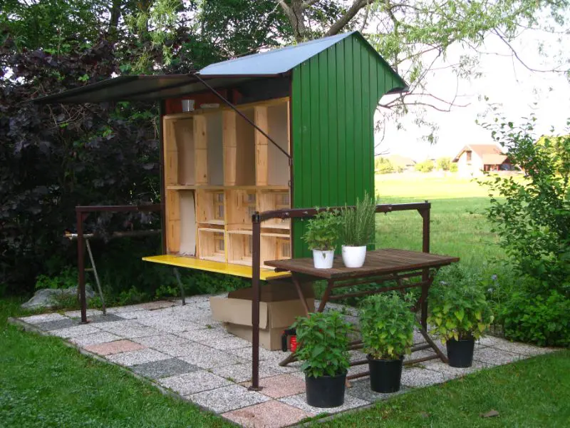 Dno čebelnjaka je še posebej ojačano. Barvano je s čokoladno rjavo barvo. Na prečnih nosilcih so zanke za pritrjevanje na prikolico.